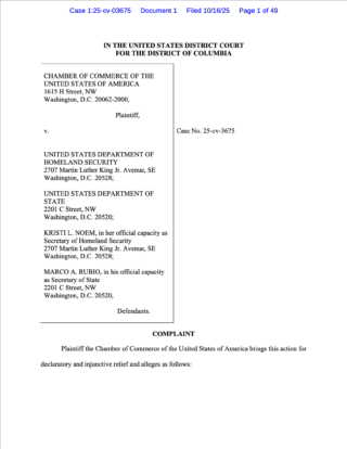 2025年10月16日,美国商会(U.S. Chamber of Commerce)在华盛顿特区联邦地区法院正式提起诉讼,起诉特朗普政府近日发布的行政公告——该公告要求未来H-1B工作签证申请须缴纳10万美元的额外费用。这一举措立即在商界与法律界引发广泛关注,被认为可能对美国企业的人才引进政策产生深远影响。